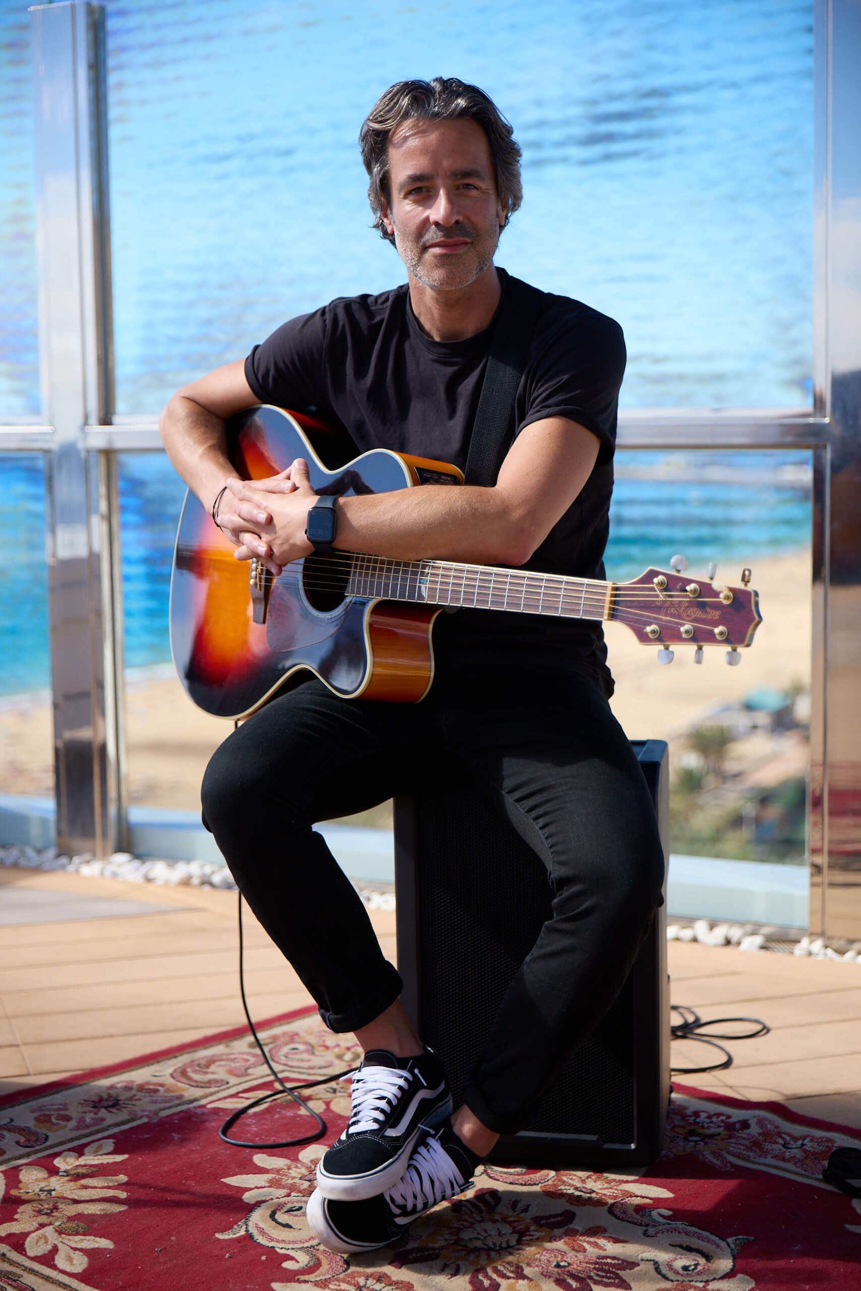 Hey, mein Name ist Kai Sonnhalter. Ich bin Sänger, Gitarrist, Songwriter – und Live Looping Artist: Als Solo-Act mit Akustikgitarre, elektronischem Percussion-Pad, Bass-Synth-Pedal und der sogenannten Loop Station baue ich live Schicht für Schicht komplette Song-Arrangements auf. Alles, was du hörst, entsteht im Moment und in Echtzeit – spontan, direkt und einzigartig. Keine Playbacks, kein doppelter Boden.